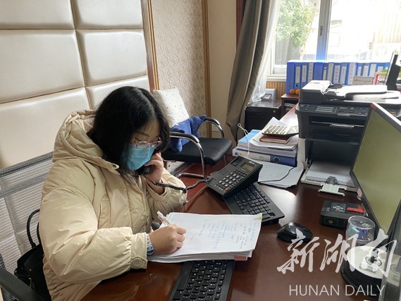 市纪委监委专项监督检查综合组的联络员谭晓琼正在汇总监督检查情况