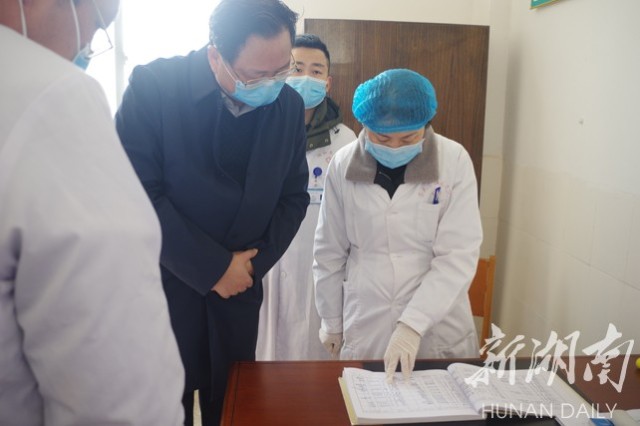 张家界市纪委书记袁美南到慈利县阳和土家族乡卫生院门诊查看登记台账
