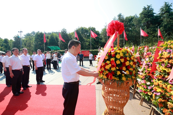 向毛泽东同志铜像敬献花篮