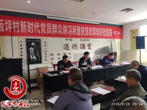 9月28日上午,区纪委监委派驻板坪村工作队联合村支两委成功举办第二期板坪村新时代党员群众讲习所暨扶贫政策知识有奖抢答赛。