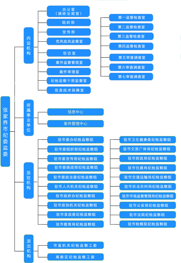 组织部:根据干部管理权限,负责全市纪检监察系统领导班子建设、干部队伍建设和组织建设的综合规划、政策研究、制度建设和业务指导;负责市纪委市监委机关及所属事业单位、市纪委市监委派驻机构、市委巡察机构的干部人事工作;会同有关部门,负责市纪委市监委派驻机构,区县纪检监察机关,市管企业、学校纪检监察机构领导班子成员的提名、考察、任免等干部人事工作;组织和指导全市纪检监察系统干部教育培训等工作;负责离退休人员管理服务工作。