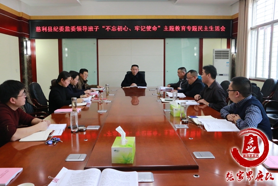 12月9日,慈利县纪委监委召开领导班子“不忘初心、牢记使命”主题教育专题民主生活会。县委常委、县纪委书记、县监委副主任(代主任)屈春林代表班子检视剖析问题,县委第八指导组组长余有平到会指导,县纪委监委全体领导班子成员参加会议。