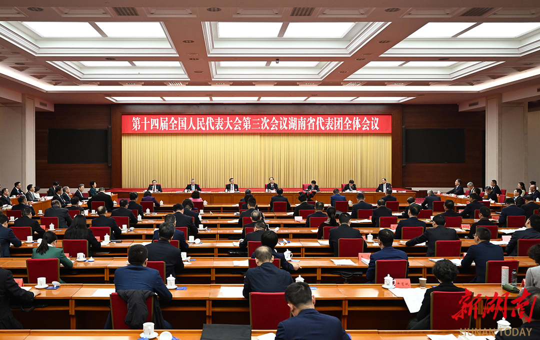 5日,出席十四届全国人大三次会议的湖南代表团在驻地举行第二次全体会议,审议政府工作报告。中共中央政治局委员、中央统战部部长石泰峰,全国人大常委会副委员长、农工党中央主席何维,全国人大常委会副委员长张庆伟参加审议。